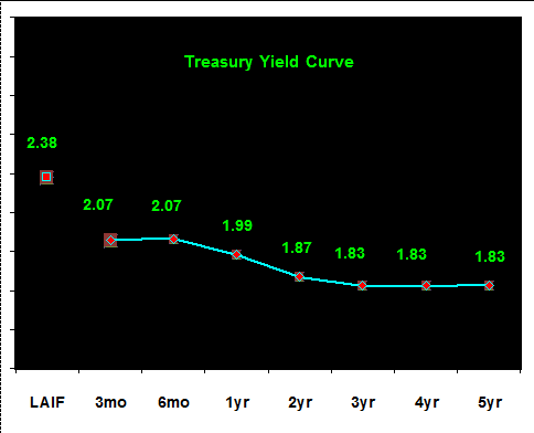 yield curve represents U.S. Treasury Bill and Note rates at the close of