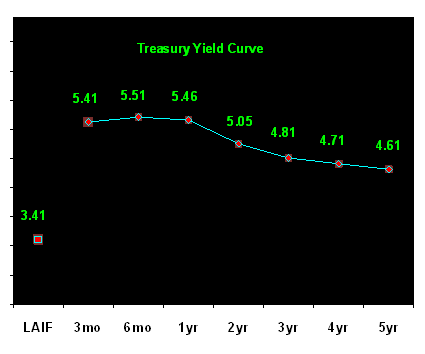 yield curve represents U.S. Treasury Bill and Note rates at the close of