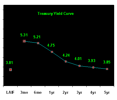 yield curve represents U.S. Treasury Bill and Note rates at the close of