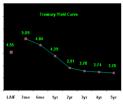 yield curve represents U.S. Treasury Bill and Note rates at the close of