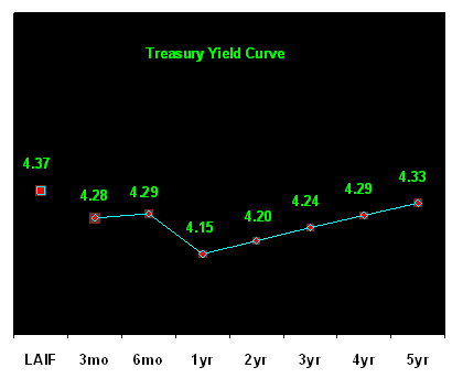 yield curve represents U.S. Treasury Bill and Note rates at the close of