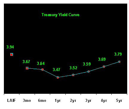 yield curve represents U.S. Treasury Bill and Note rates at the close of